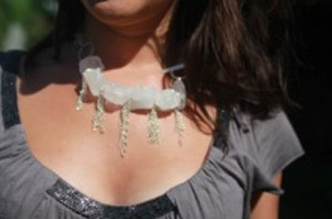 Not having the best hair or face day try wearing a longer necklace with a low focal point, such as the Arctic Ice Jewels Northern Lights Lariat. This is to take the eye away from the area that you don’t want to highlight. Note in the photo below that when you look your eye naturally goes to the focal of the necklace as apposed to her upper body. The same philosophy works in reverse as well. If your feeling bloated try keeping your jewelry shorter and interesting so the attention is detracted from the offending area.